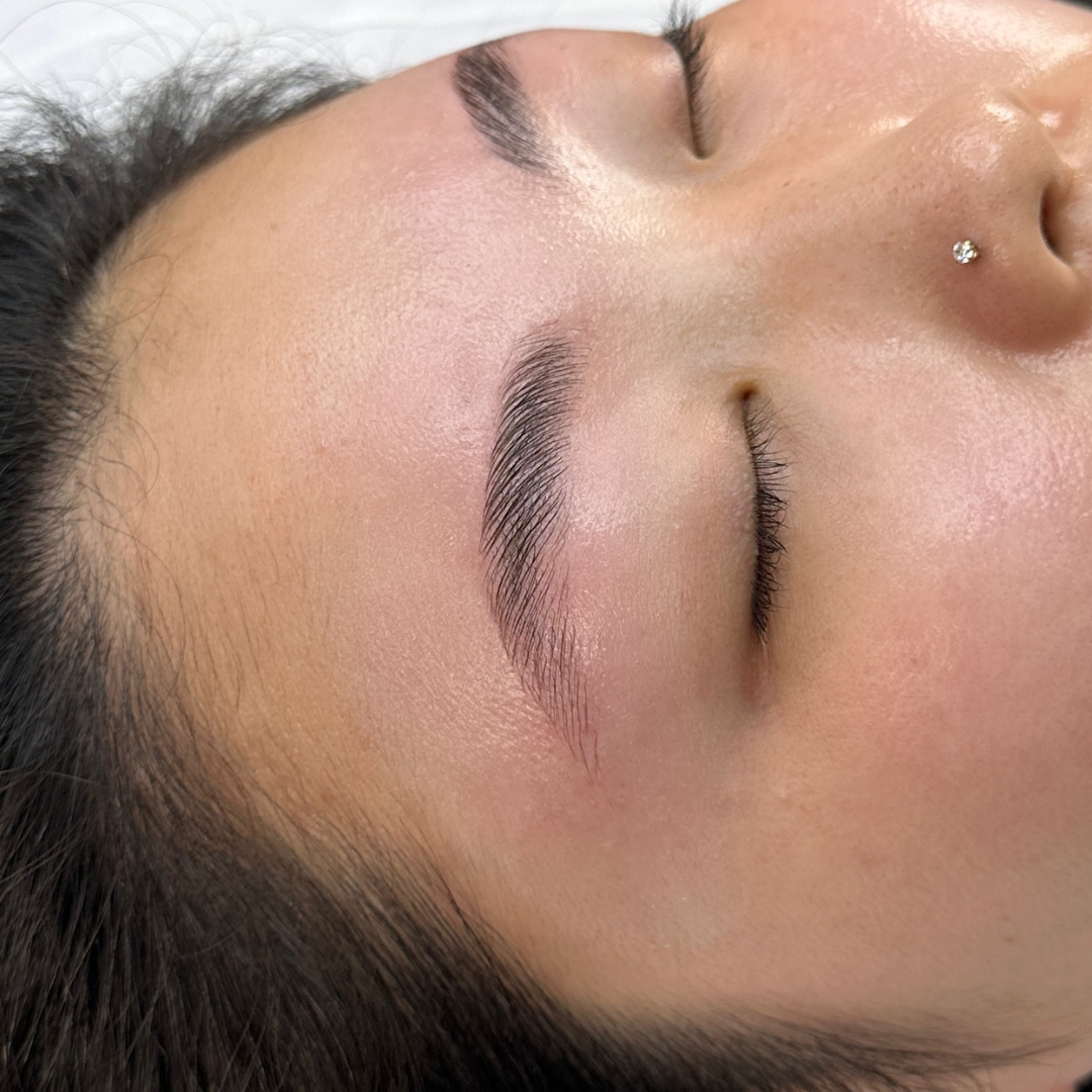 OPTIONAL use a tint or a hybrid stain depending on the results your client is looking to achieve. If necessary, wax the brows according to the clients desired shape.